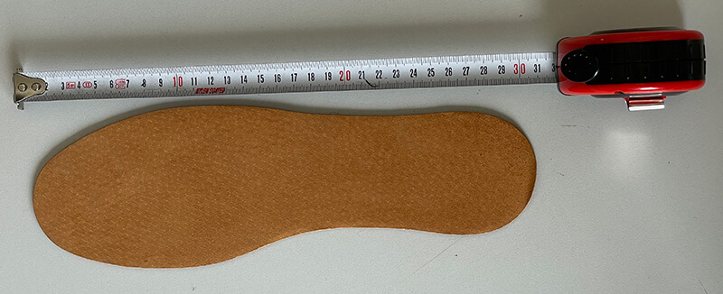 1. Najprostszym sposobem doboru właściwego rozmiaru wkładki jest zmierzenie jej w ulubionej parze butów, takiej w której nasze stopy "najlepiej się czują". W tym celu należy wyciągnąć wkładkę z buta i zmierzyć jej długość (przy stosowaniu tej metody trzeba jednak pamiętać, by nie mierzyć wkładki z buta, który jest bardzo rozchodzony, gdyż wówczas pomiar może nie być miarodajny).