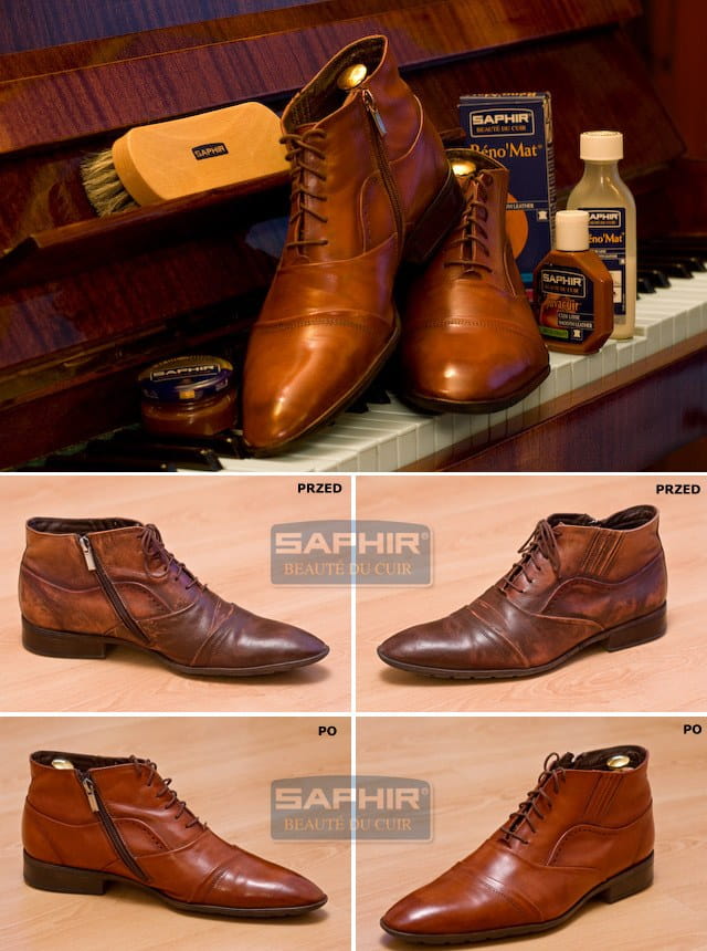 . Odtłuścić skórę za pomocą SAPHIR – RENOMAT lub innego środka do skór.
