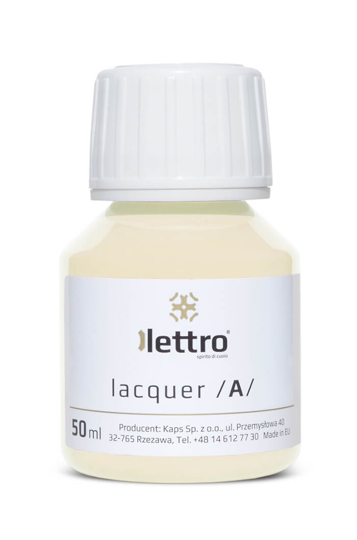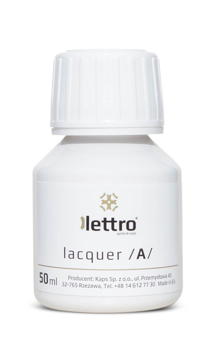 1. Po lakierowaniu należy pozostawić skórę w suchym miejscu (temp. pokojowa) na 24h. Po tym czasie lakier będzie odporny na ścieranie i wilgoć.