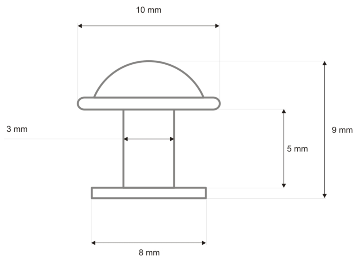 • wysokość: 5mm ( między stopką a łebkiem ),