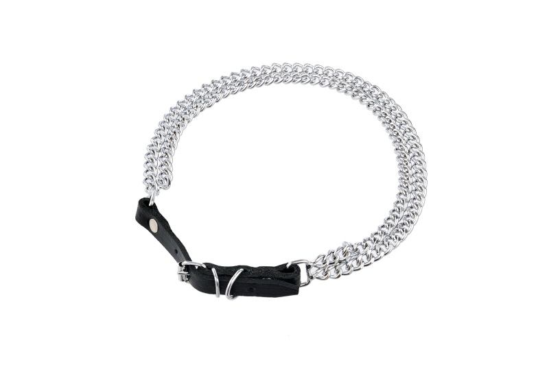 Obroża Skóra Łańcuch podwójny