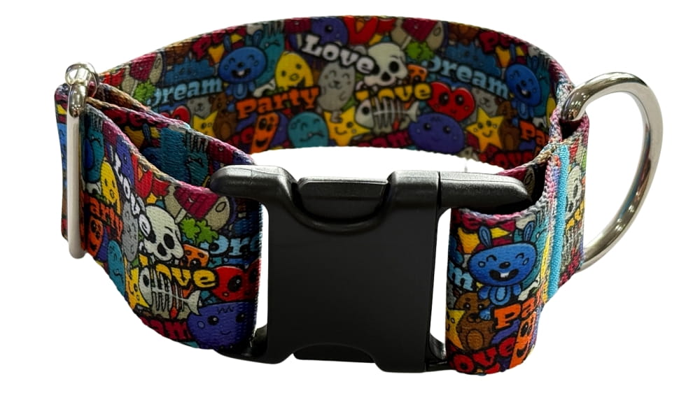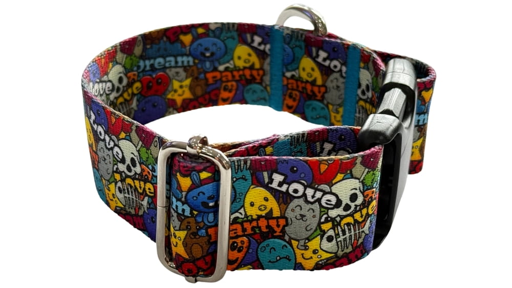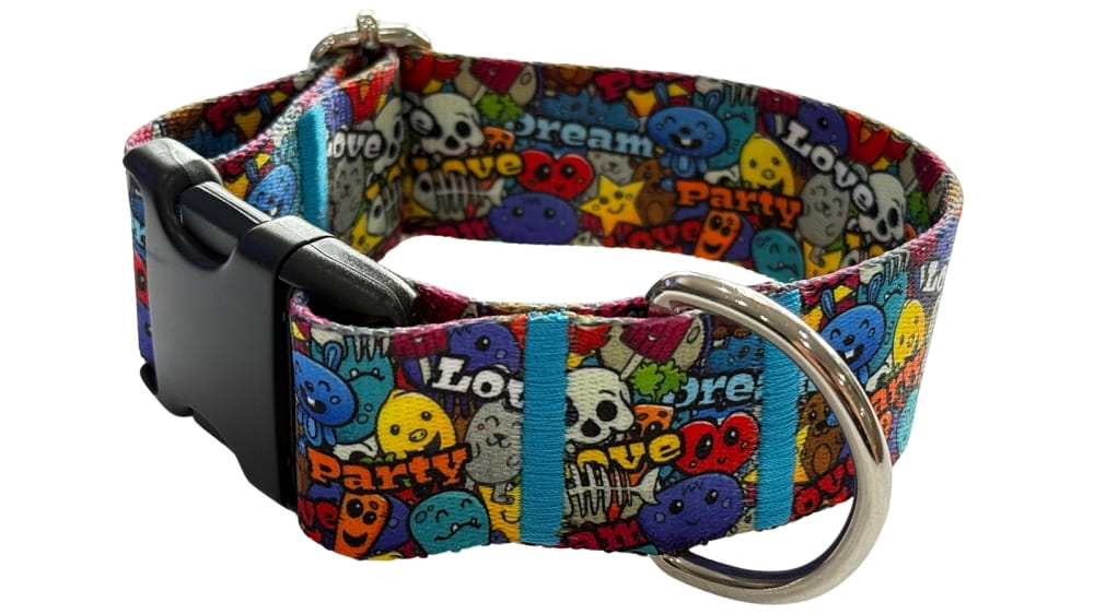 Obroża wykonana jest z wysokiej jakości poliestrowej taśmy 4 cm, dwustronnie zadrukowanej oryginalnym wzorem. Dzięki temu jest nie tylko trwała i odporna na przetarcia, ale też wyróżnia się dopracowanym wyglądem — idealnym dla osób, które chcą, aby akcesoria psa były jednocześnie praktyczne i estetyczne.