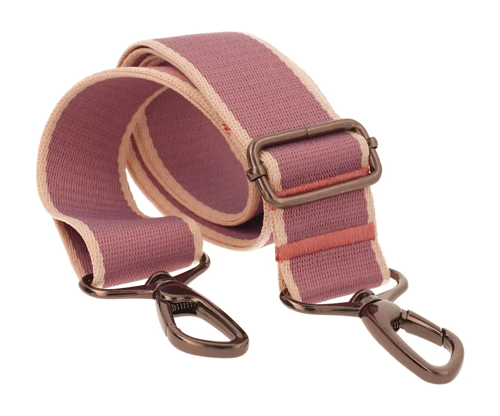 Odkryj wyjątkowy styl z naszym regulowanym paskiem do torebki o szerokości 38mm, w kolorach Fioletu z beżowymi paskami. Ta unikalna taśma bawełniano-poliestrowa, o grubości około 1,2mm, zapewnia wygodę noszenia oraz solidność, łącząc w sobie praktyczność z modnym wzornictwem.