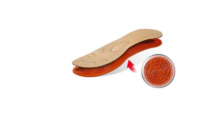 Wkładki doskonale amortyzują wstrząsy powstałe w momencie zetknięcia stopy z podłożem.